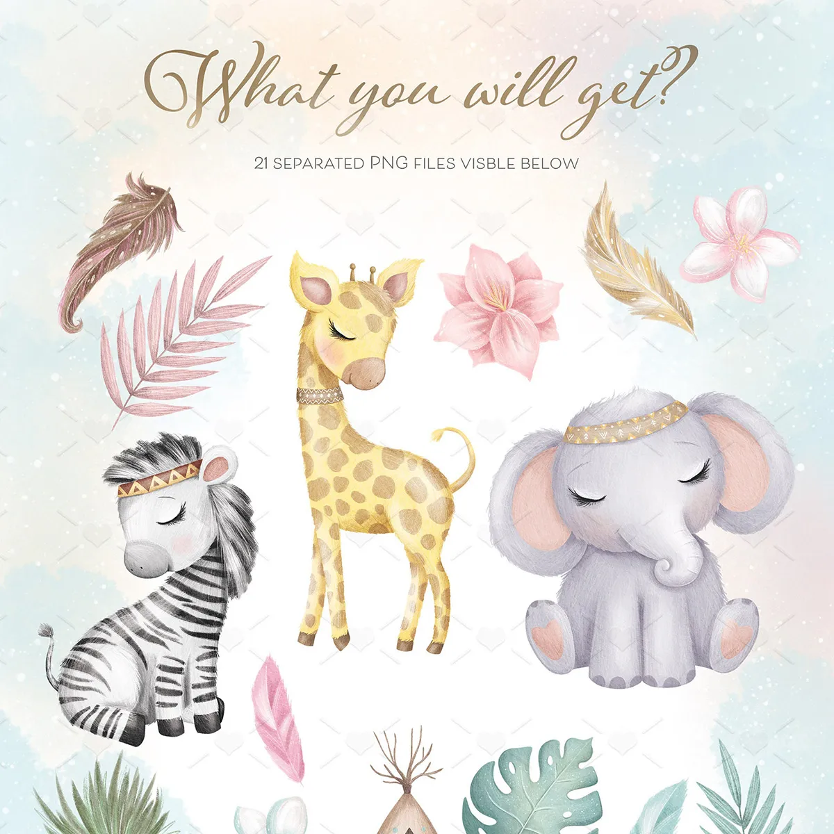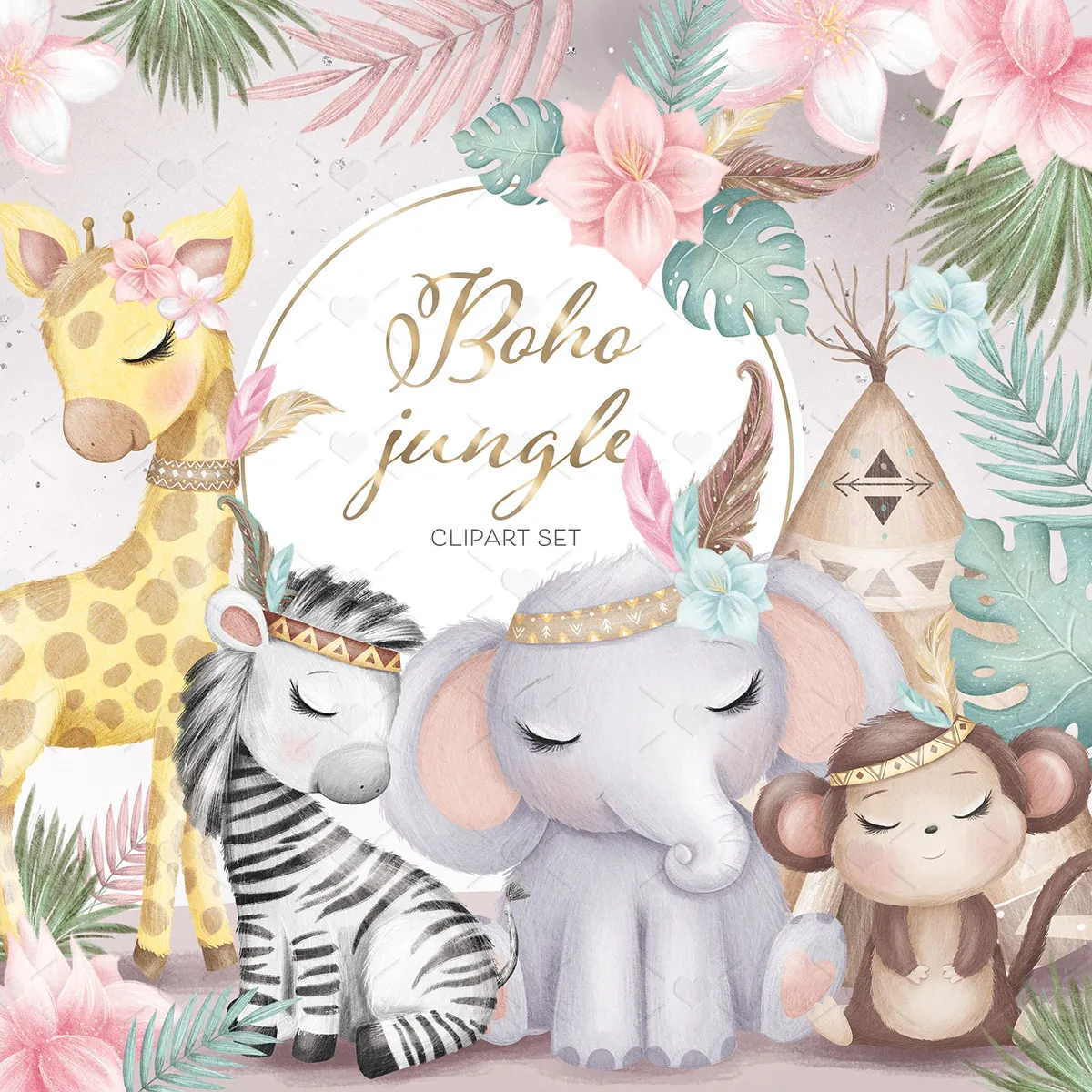 Super cute digital files. The Boho Jungle Animals Clipart Set was exactly what I needed for my baby shower invitations.