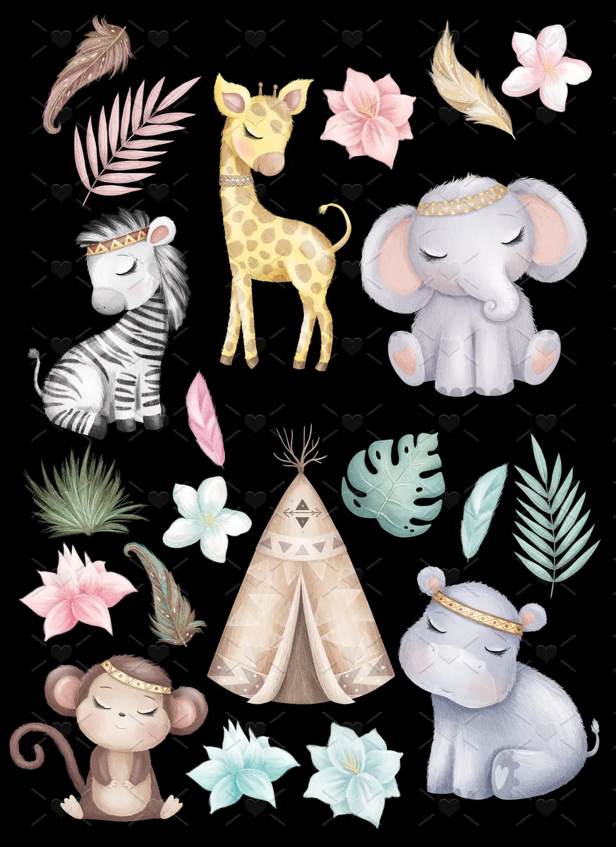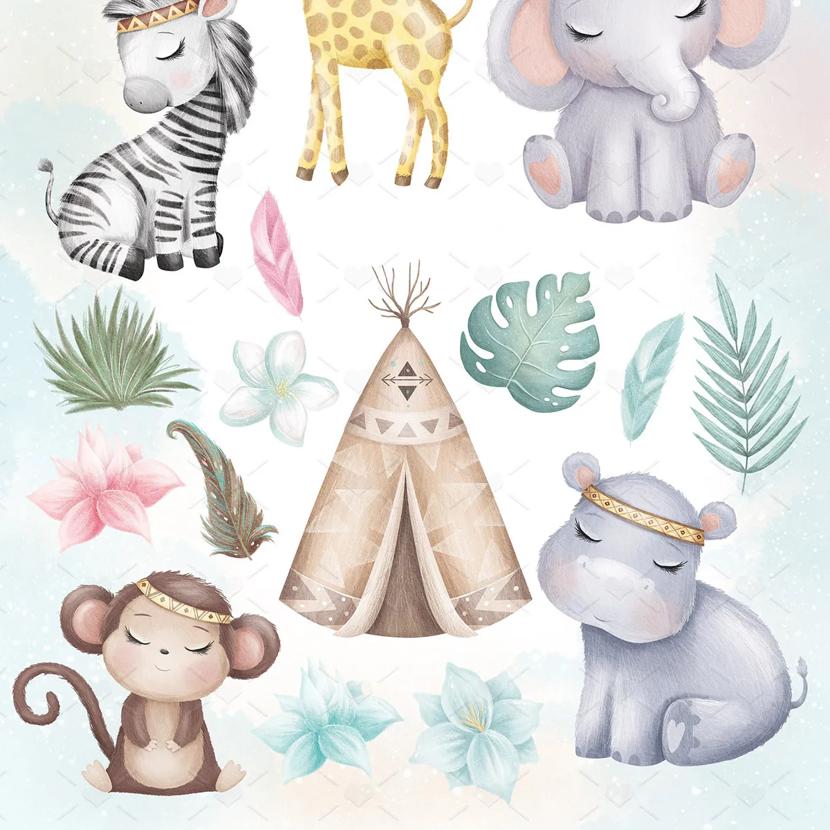 Ideal for sublimation, party decor, baby nursery themes, and custom stationery, this collection is a must-have for crafters, Etsy sellers, and small business owners. Our Boho Jungle Animals Clipart Set stands out with its hand-drawn, whimsical style, soft color palettes, and intricate boho patterns. Elevate your designs with these unique, high-quality illustrations that are ready to use and easy to customize.